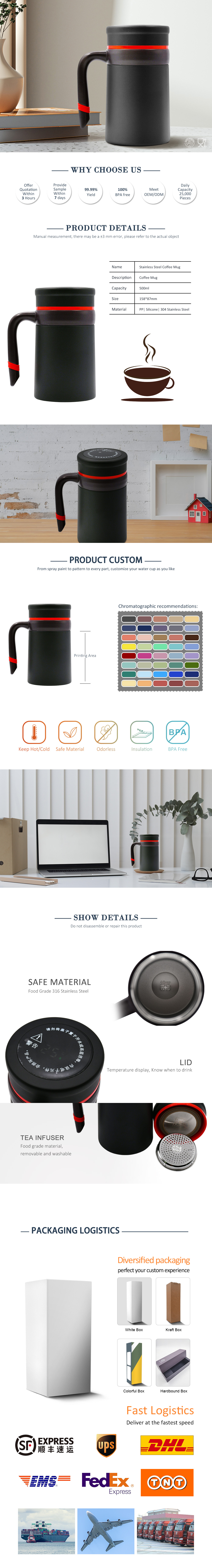 17oz/500ml handle double vacuuming temperature display 304 stainless steel business insulated coffee mug