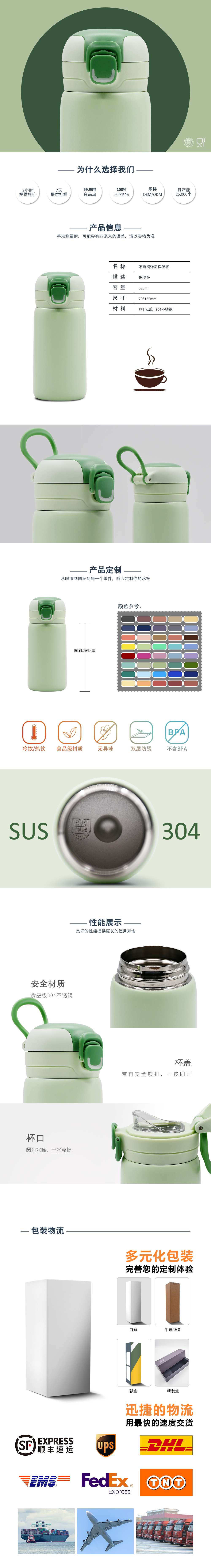 380ml/12oz 日韩风304不锈钢双层弹盖保温杯