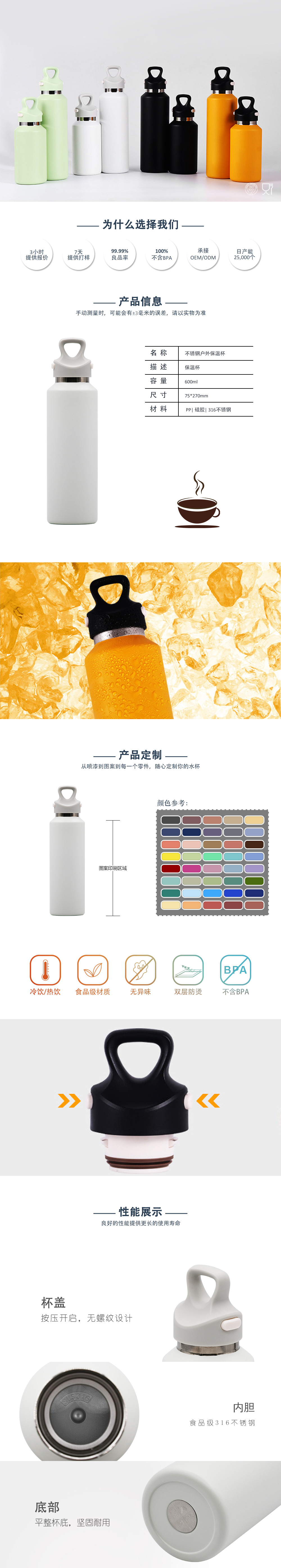 保温杯无螺纹速开户外运动不锈钢杯子2025年新款水杯