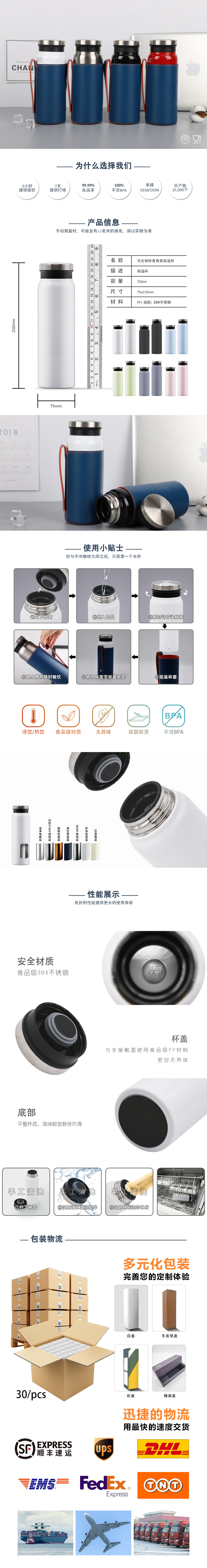 750ML带杯套便携不锈钢双层镀铜保温杯