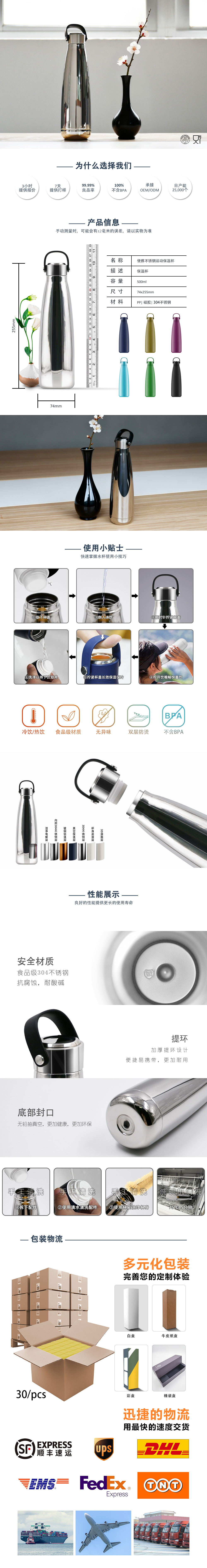 500ml/17oz 认证供应商500毫升户外运动304不锈钢无铅真空水瓶